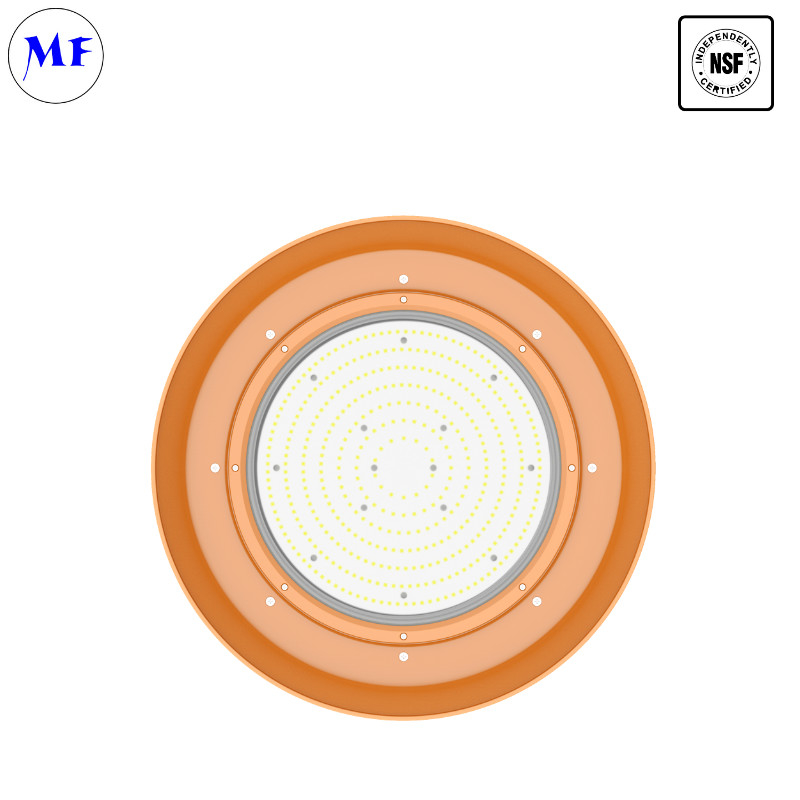 La luz de la bahía alta de alimentos NSF de Mingfeng Lighting es una solución de iluminación de vanguardia diseñada para diversas aplicaciones como instalaciones de procesamiento de alimentos, almacenes, centros comerciales,y centros de exposiciónCon una clasificación de resistencia al agua IP66 y una alta eficiencia de hasta 150Lm/W, esta luz de gran altura garantiza durabilidad y ahorro de energía.El producto viene con una garantía de 5 años y está disponible en potencias que van desde 50W a 240W, ofreciendo flexibilidad para diferentes necesidades de iluminación.