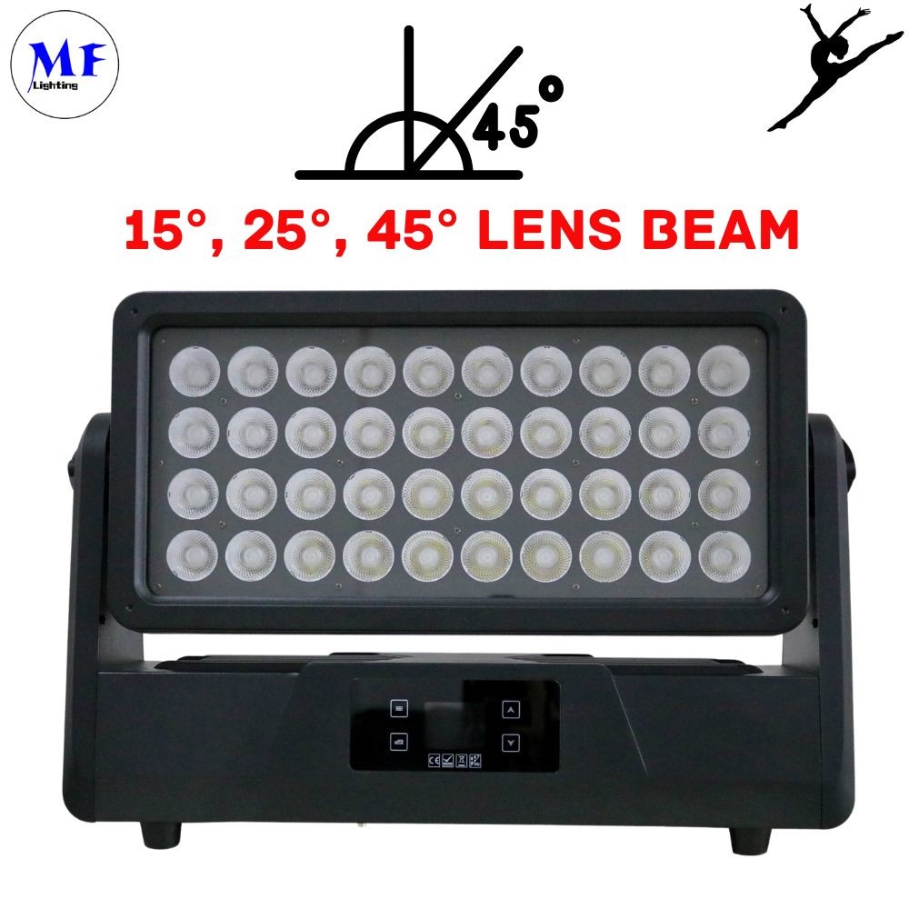 Esta lámpara tiene 40 bombillas LED RGBW 4 en 1 de 25 vatios, con una potencia total de hasta 1000 W y una vida útil de hasta aproximadamente 100 000 horas. La clasificación de impermeabilidad IP65 garantiza que pueda funcionar de manera estable en diversos entornos hostiles, lo que brinda a los usuarios efectos de iluminación duraderos y eficientes. Además, adopta una carcasa de aleación de aluminio fundido a presión con un tratamiento de superficie de recubrimiento en polvo, que es hermosa y duradera.